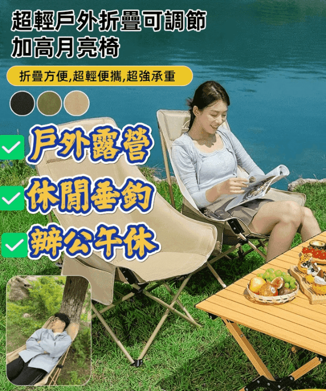 【熱賣top1】超輕量戶外折疊可調加高月亮椅